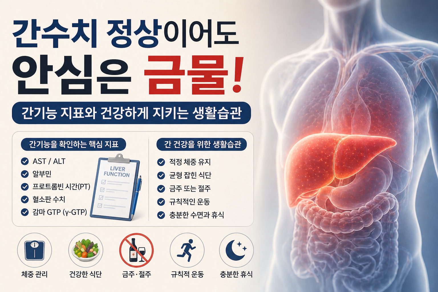 이 글은 개인적인 경험과 공개된 의학 정보를 바탕으로 작성한 것이며, 전문적인 의료 조언을 대신하지 않습니다. 간 건강에 대한 정확한 진단과 치료 방향은 반드시 의사와 상의하시기 바랍니다.